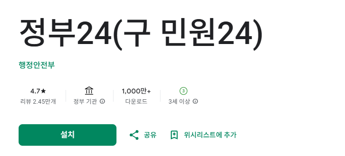 | 온라인 제출용 서류 필요 | 정부24 앱/웹 |